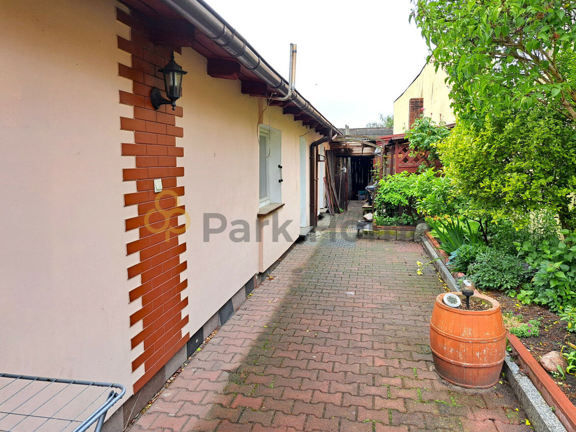 Dodatkowo, na działce znajduje się budynek gospodarczy, który został przekształcony w oddzielne mieszkanie (3 pokoje, kuchnia i łazienka). Jest to idealne rozwiązanie dla osób szukających dodatkowej przestrzeni lub wynajmu. Warto podkreślić, że na posesji zlokalizowany jest również garaż o powierzchni około 16 m², z wjazdem od ulicy Tylnej.